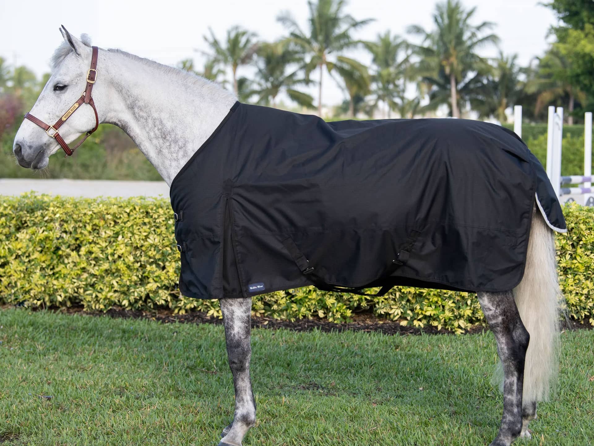 The Wellie-Wear 600D Turnout Sheet 150g provides a balanced, polished layer for cool and changeable weather, offering gentle warmth while maintaining a clean, classic silhouette. Its 600D waterproof outer presents a crisp, structured appearance, complemented by a smooth taffeta lining that supports coat shine and helps reduce friction for a comfortable fit. The 150 gram fill adds subtle insulation without bulk, and the fleece wither panel offers soft cushioning along the top line. Adjustable front buckles with quick-release snaps create a tailored front closure, supported by a coordinating Velcro tab for additional stability. Gusseted shoulders promote natural movement, while elastic bias-surcingles and removable leg straps help the sheet settle neatly as the horse moves. A well-shaped tail flap completes the streamlined profile and features a reflective accent for visibility in low-light conditions. Designed with thoughtful construction and timeless presentation, the turnout sheet is a practical approach to everyday weather protection.