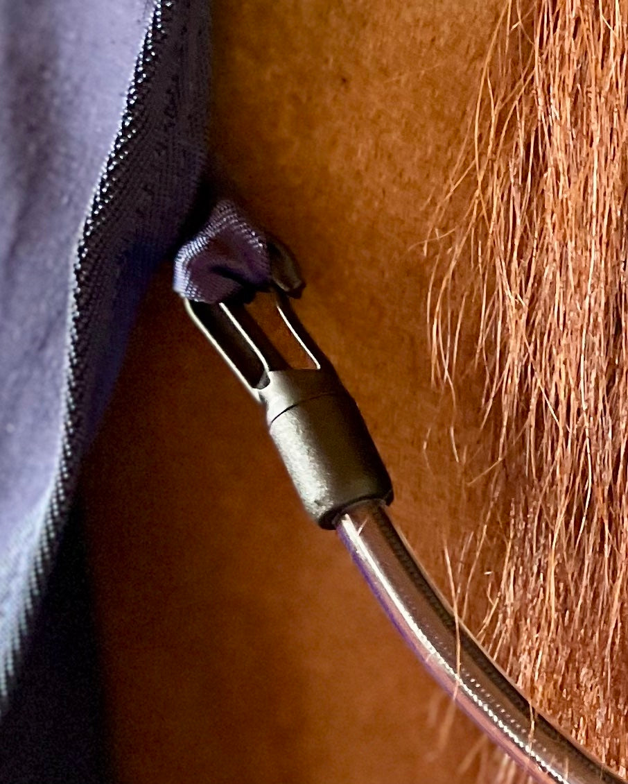 The Wellie-Wear Blanket Tail Cord offers a simple yet elegant solution for securing a horse’s tail while maintaining a polished appearance when blanketed. Constructed with a plastic-covered bungee cord and two plastic clip ends, it easily wipes clean, allowing users to have a functional and fresh experience while blanketing.